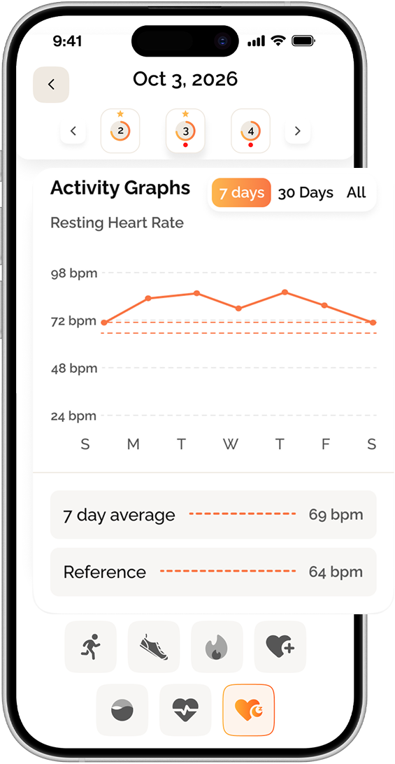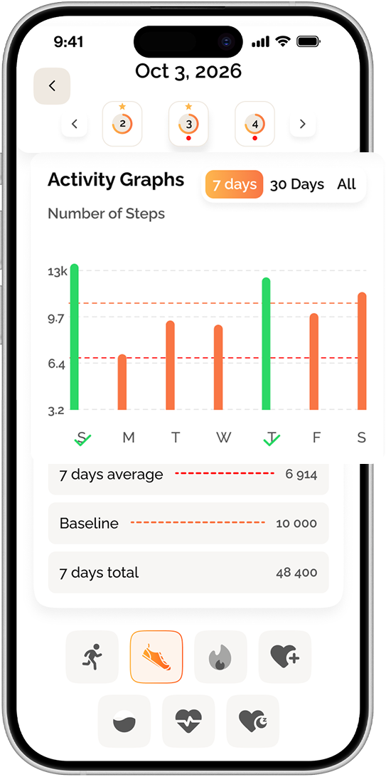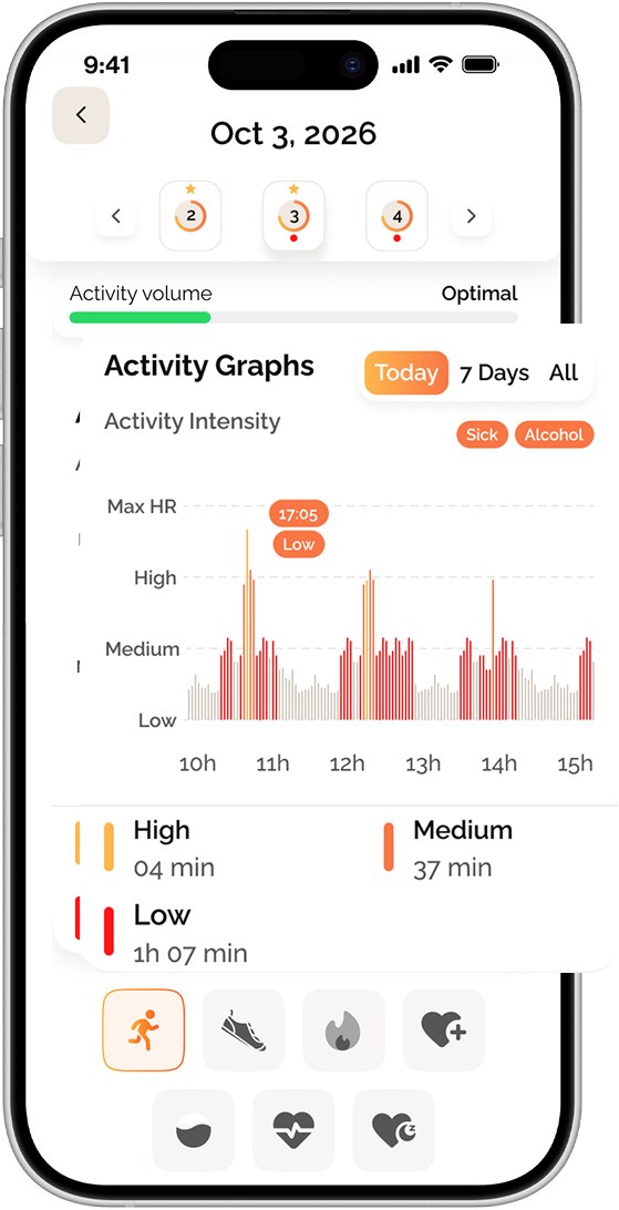 - Displays clear charts and organized trends so you see how habits affect energy and recovery.
