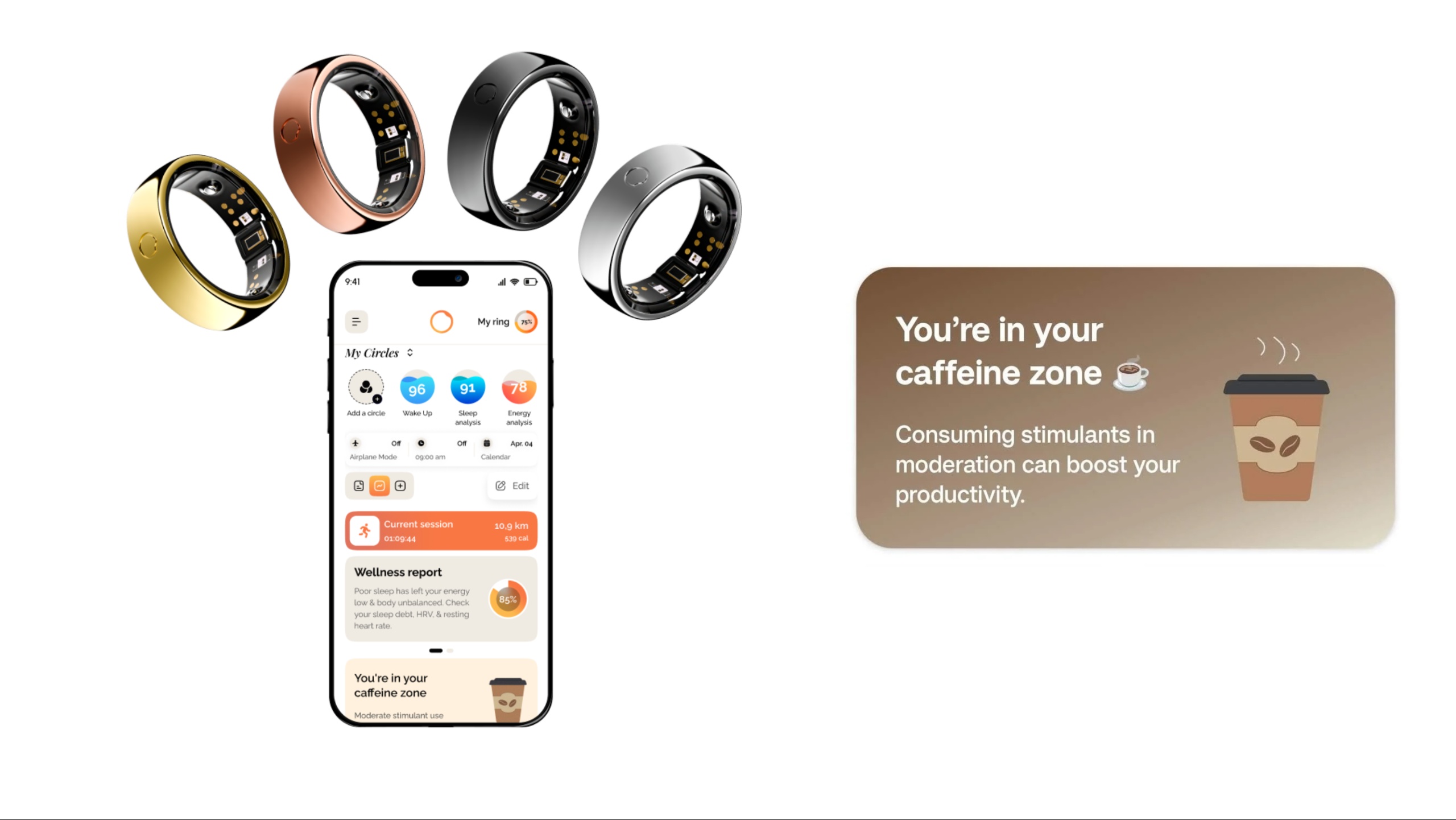- Caffeine Windows, guided breathing exercises, and a smart alarm clock are just a few of the practical features that put the Circular Ring 2 in a league of its own.
